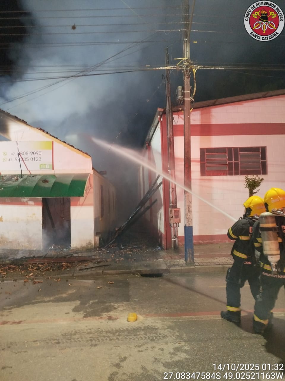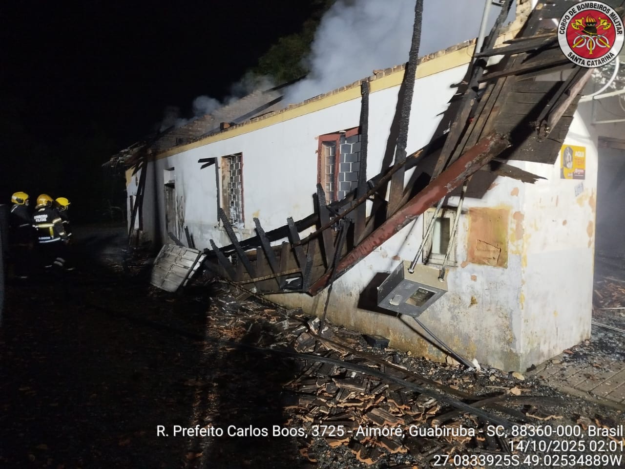 Um incêndio de grandes proporções destruiu completamente uma edificação comercial no bairro Aymoré, em Guabiruba, na madrugada desta terça-feira (14/10). O sinistro ocorreu por volta da 1h, na Rua Prefeito Carlos Boos, e mobilizou guarnições dos Bombeiros Militares de Guabiruba, Botuverá e Brusque.