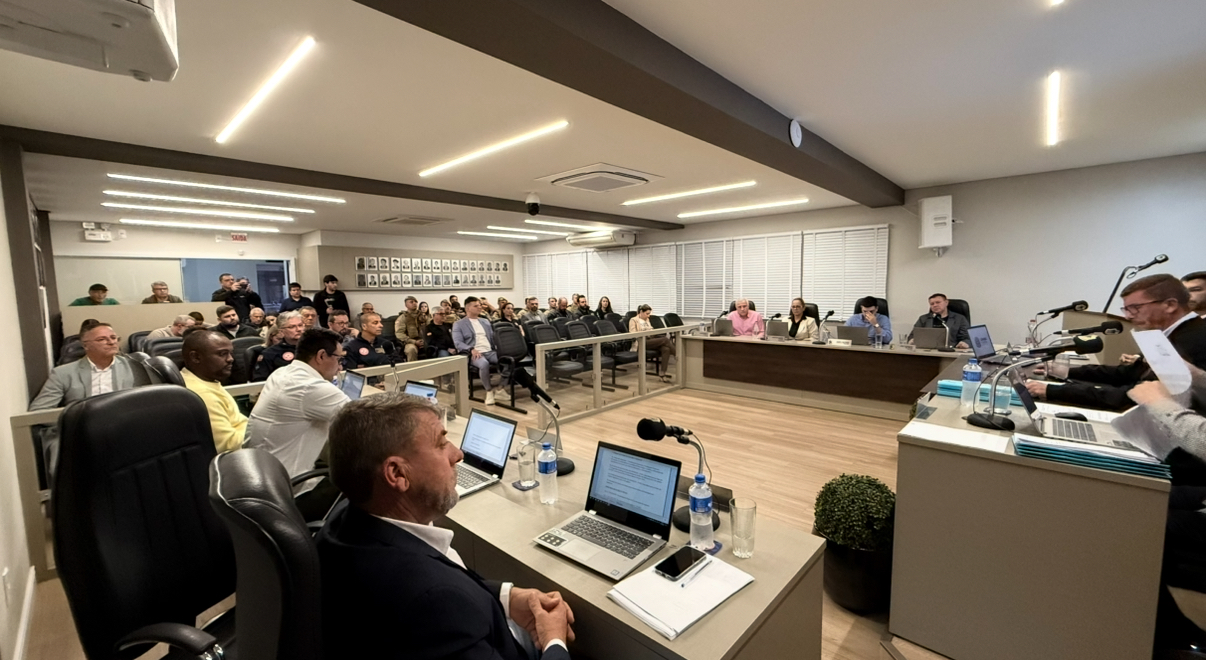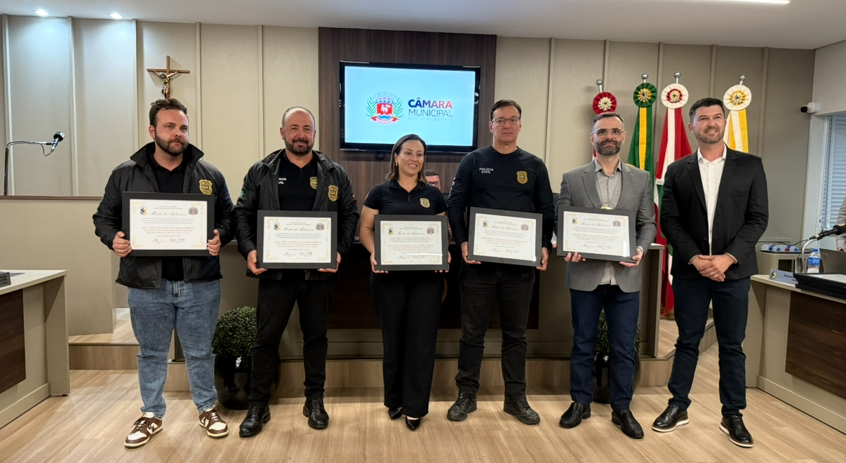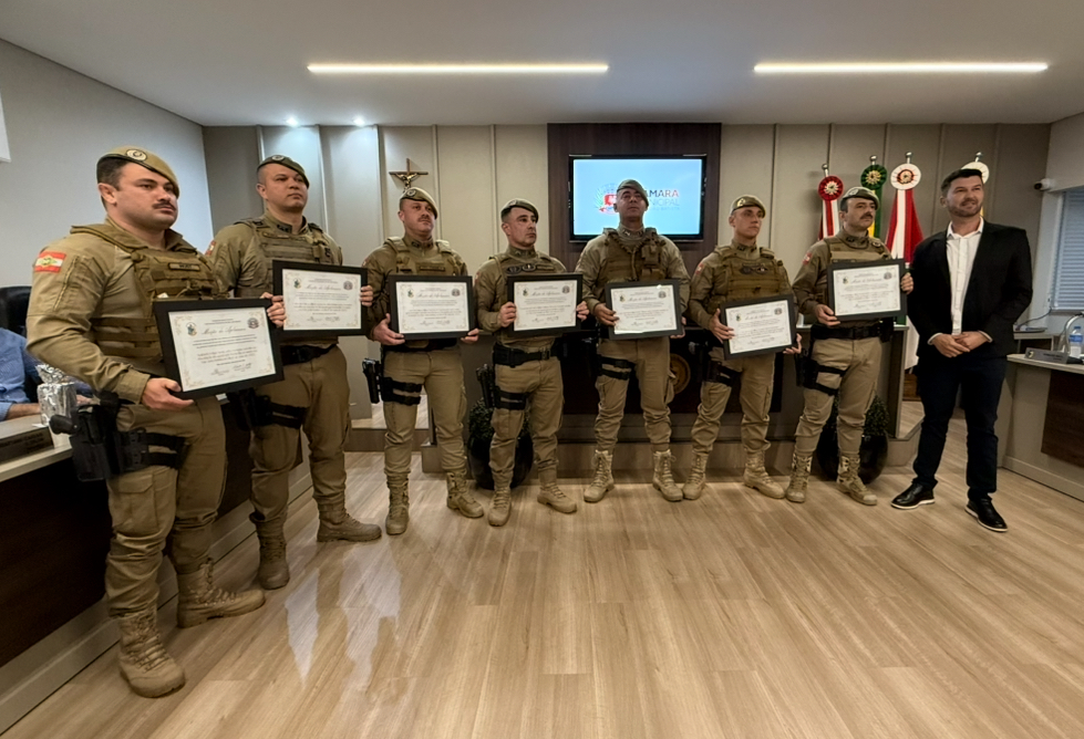 A homenagem foi proposta pelo presidente da Câmara, Fábio Norberto Sturmer, e pelo vereador Alexandre Peixer Baltazar, em reconhecimento ao comprometimento e à integração das forças que trabalham diariamente em defesa da população.