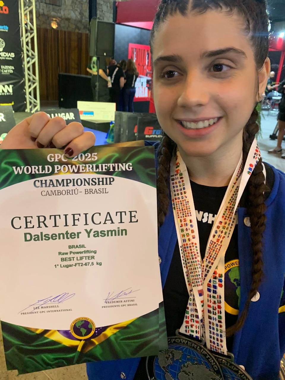 Com esse resultado histórico, Yasmin Dalsenter, a jovem florianopolitana de 17 anos, que treina há apenas dois anos, se consolida como um dos grandes nomes do powerlifting brasileiro e inspira uma nova geração de atletas a acreditarem que, com esforço e determinação, não há peso que não possa ser levantado
